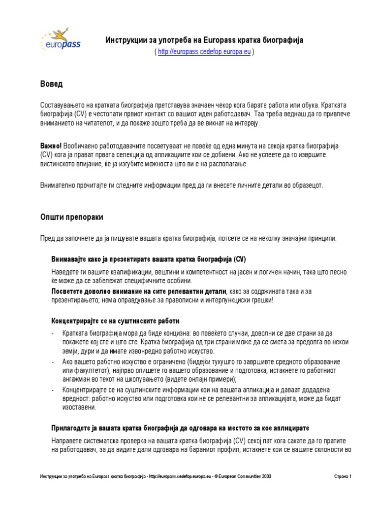 It is easy-to-use and familiar to employers and education institutions. Če se prijavljate na delovno mesto v tujini ne pozabite navesti kode za državo glejte primer vzorčnega življenjepisa na spletu. Бланка - Европейски формат на автобиография за работа Европейско cv.