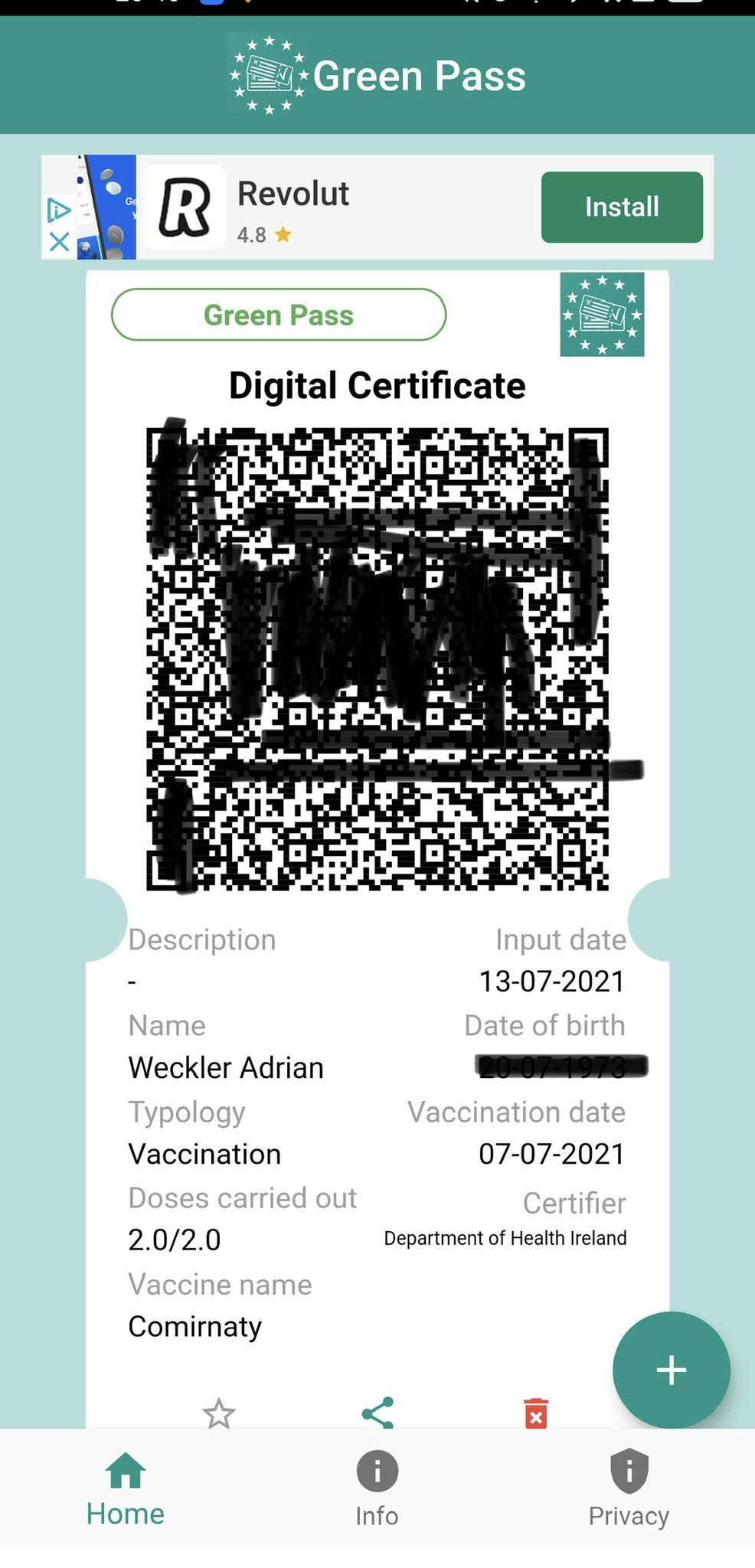 Adrian Weckler On Twitter You Can Sideload Info See Pics Into Your Phone S Wallet Using 1 Android Greenpass App 2 Iphone Https T Co 4whsr5vbeq But Remember If The Qr Code Isn T Being
