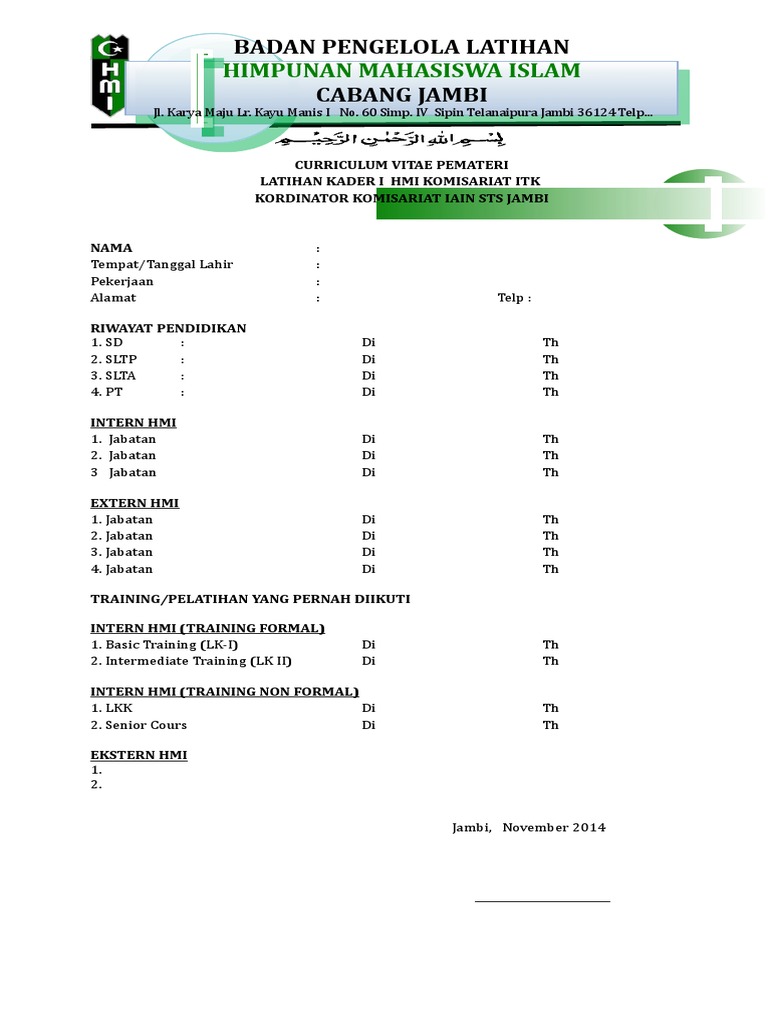 Format Curriculum Vitae Pemateri